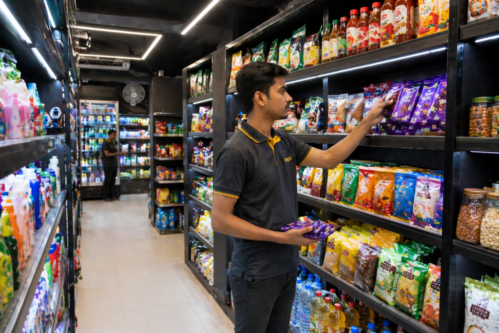 Unlike traditional delivery apps that rely on restaurant or store partners, Zepto built a network of dark stores small fulfilment warehouses hidden in residential areas. These dark stores are the secret weapon behind their legendary speed. No showroom. No walk-in customers. Just fast delivery.